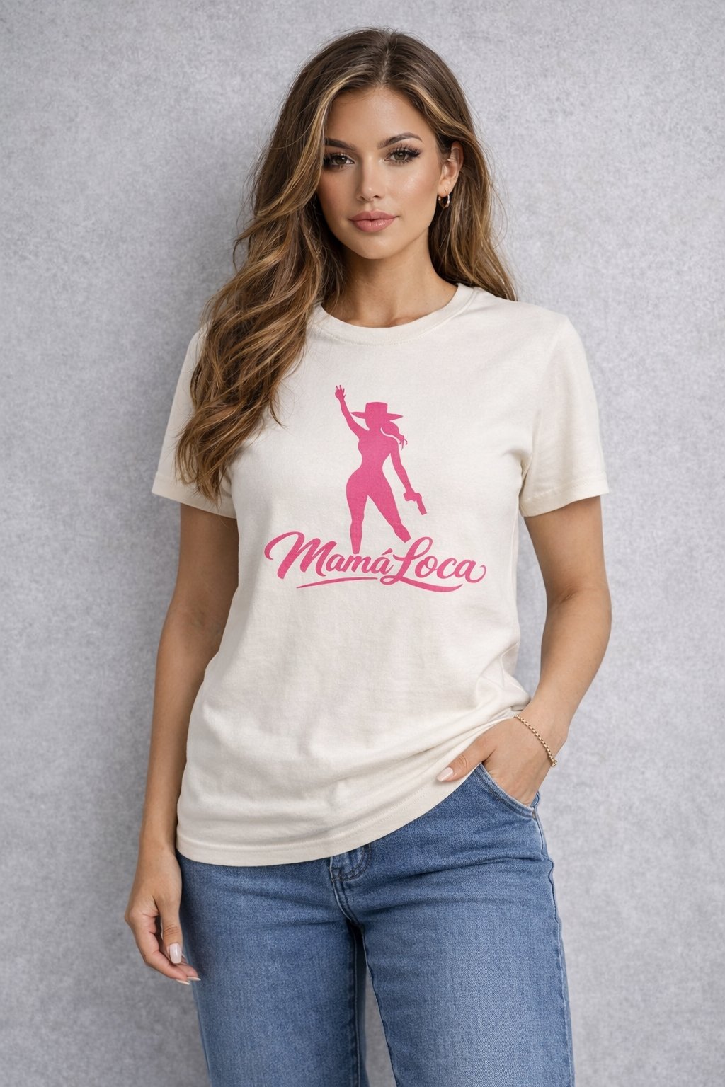 CREAM T-SHIRT WITH PINK LOGO